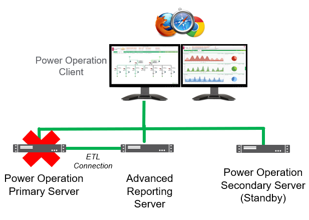 NOTE: The ETL does not support the concept of communicating with a redundant Power Operation setup. For this reason, if the Power Operation Primary Server failed, then the ETL on the Advanced Reporting Server would need to be reconfigured manually to point to the Secondary Server.