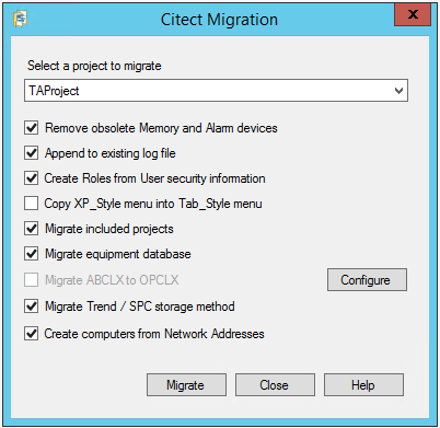 - In Power Operation Studio, click Project, select Home > Migration Tool to display the Citect Migration Tool dialog.
