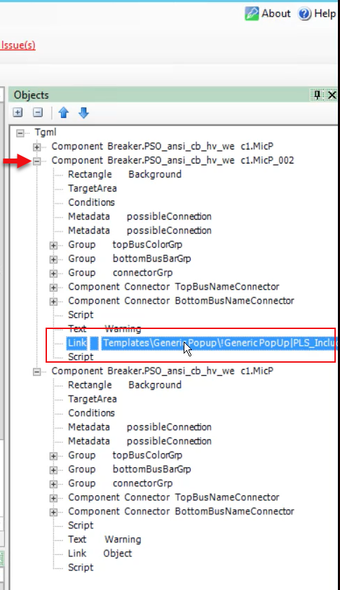 - In the bottom right corner, in the Objects pane, expand TGML > Component node.