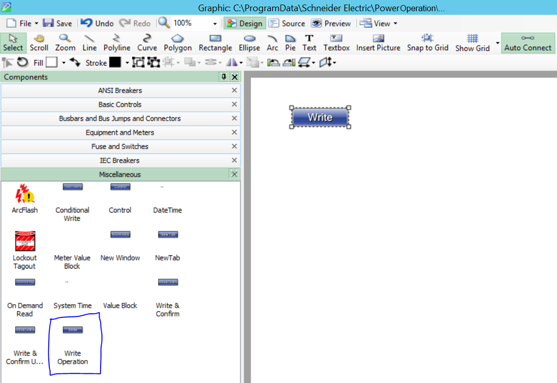 In the bottom right corner, click Objects, and then click on the write operation component: