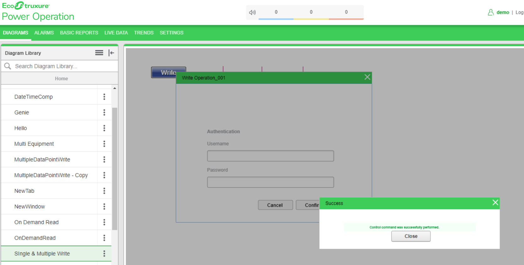 Use the Single or Multiple DataPoint Write component to perform generic write operations for a single or block write. It can be used to write multiple set-points at once, setting up tariff and command write.