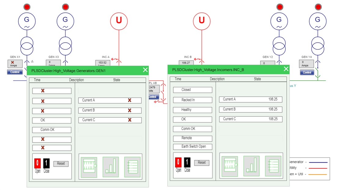 The following example demonstrates comm loss due to a bad quality tag with a breaker popup open: