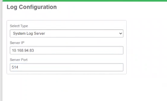 To configure your syslog server, you will need the system IP where the syslog server is installed or the hostname, and the port number the syslog server will open, in order to receive log messages from WebHMI.