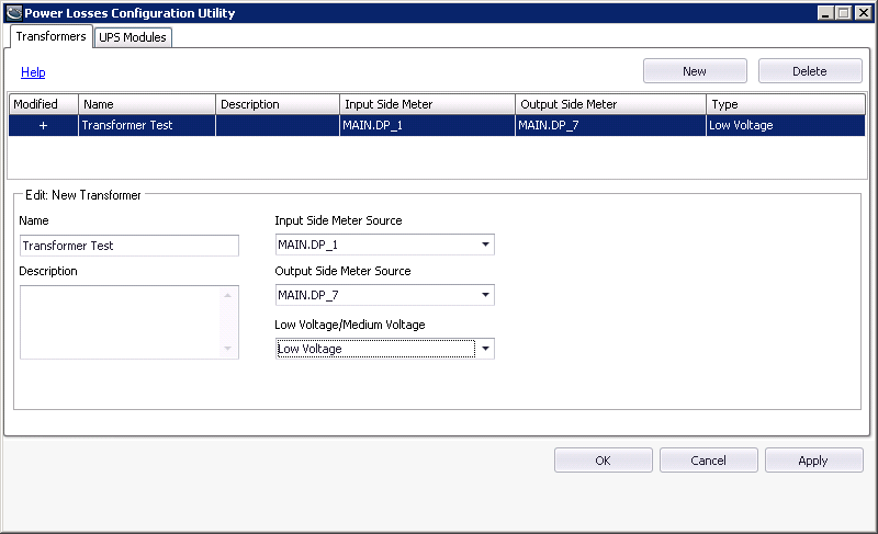 - Low Voltage/Medium Voltage: Select Low Voltage or Medium Voltage from the drop-down list to indicate the transformer voltage rating type.