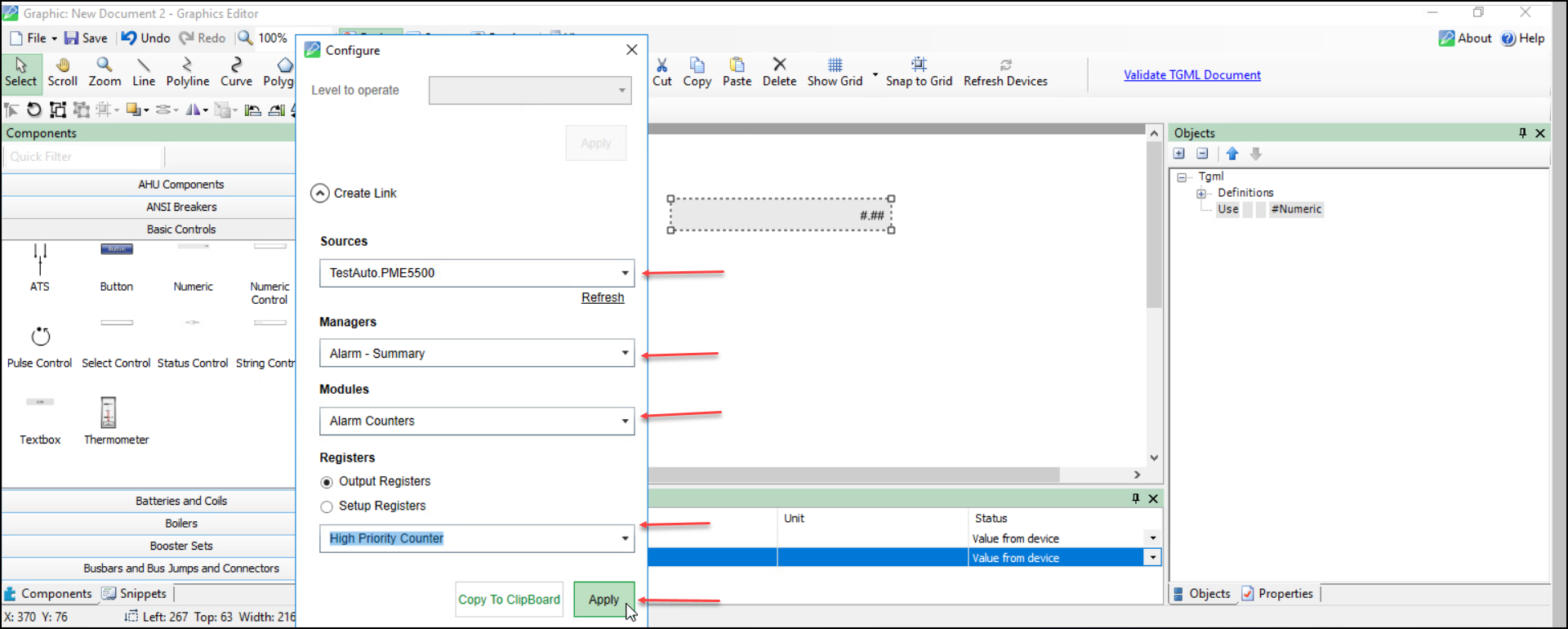 | Number of devices | Graphics Editor TGML Category type | Total number of Graphics Editor TGML Category Type (Components) | PME Web Application Average Response Time (seconds) |