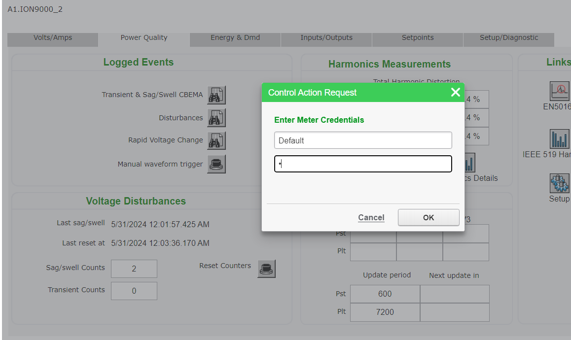 For Meters with Firmware V4.5 and has Advanced Security and Legacy security support enabled, the Meter Password should be set as Non-Zero. Also, the Username is not editable, it is Default always.