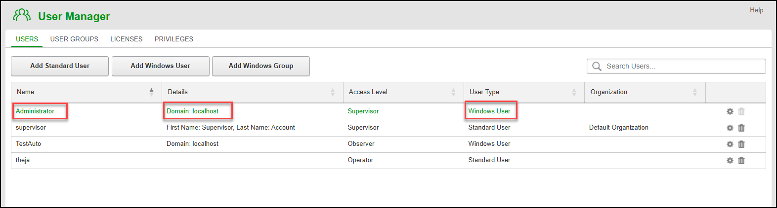 - In User Manager, select the Users tab, and then click Add Windows User.