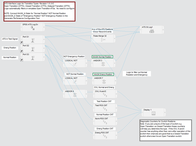Designed to capture ATS digital input signals (test, normal, and emergency). NOTE: This framework is configured for Open Transition ATS by default and requires additional configuration for use with Closed or Delayed Transition ATS. |