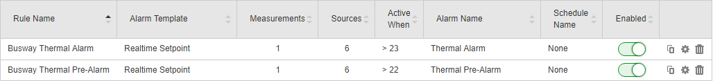 - Add a new alarm rule for a thermal pre-alarm. Use the same details as for the thermal alarm, but set the temperature thresholds lower so that the pre-alarm is activated before the main alarm.