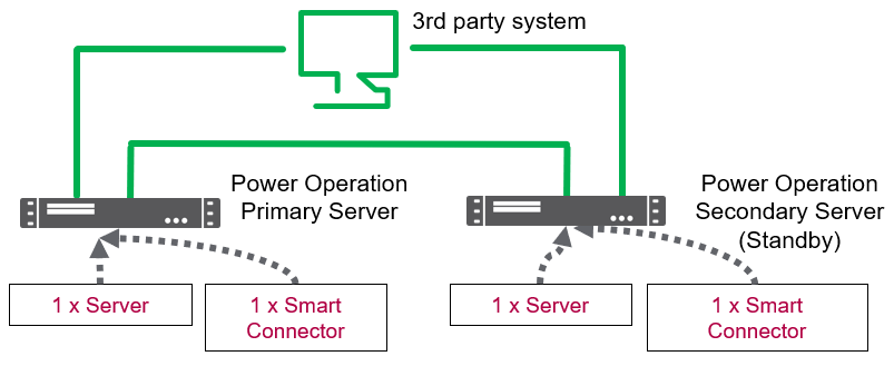 The ability to support the redundant Power Operation architecture with Smart Connector depends on the third-party system. If the third-party system does not have a concept of working with redundant systems, then you should only connect to the Primary Server.