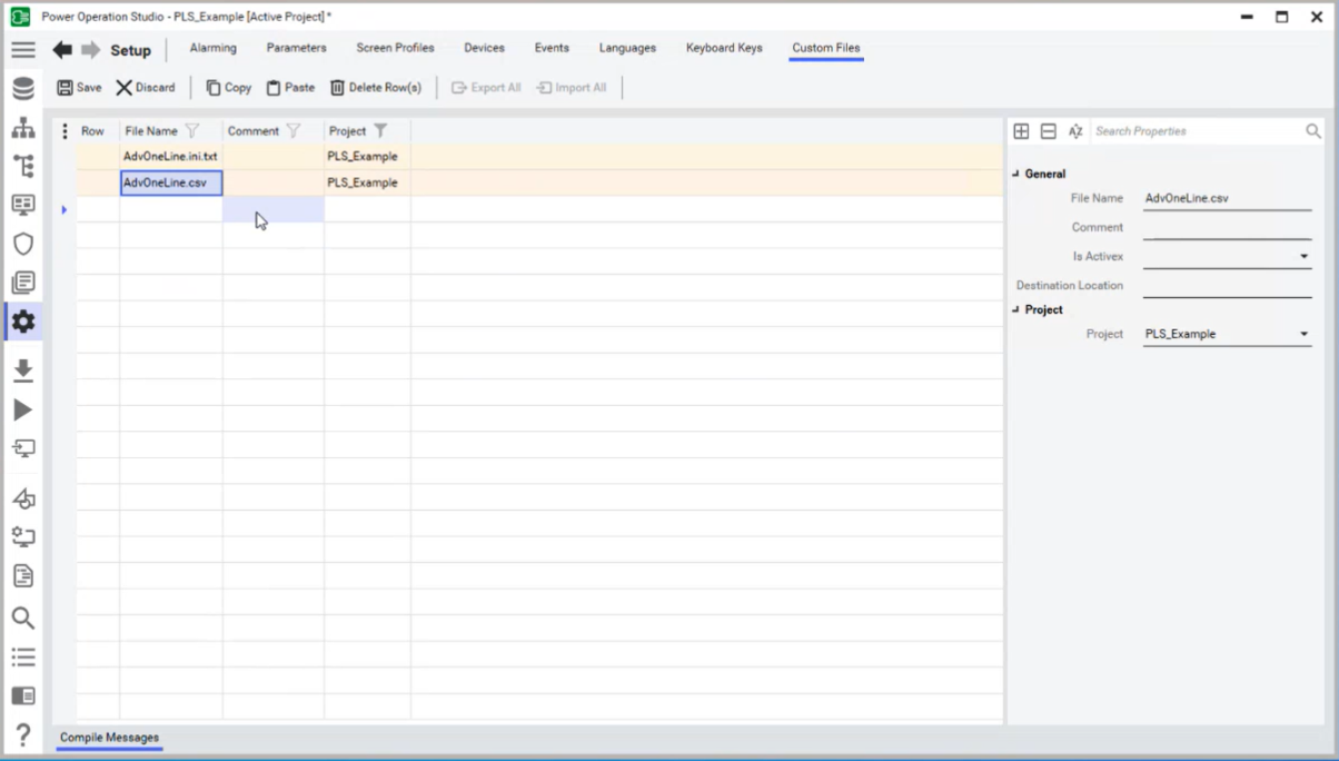 - In Power Operation Studio, in the Setup activity, in the File Name column, enter the following file names in two respective rows: