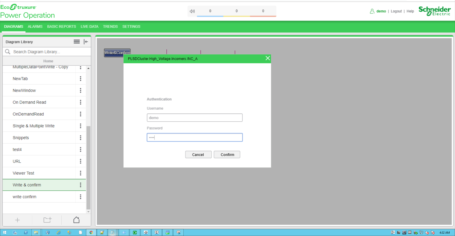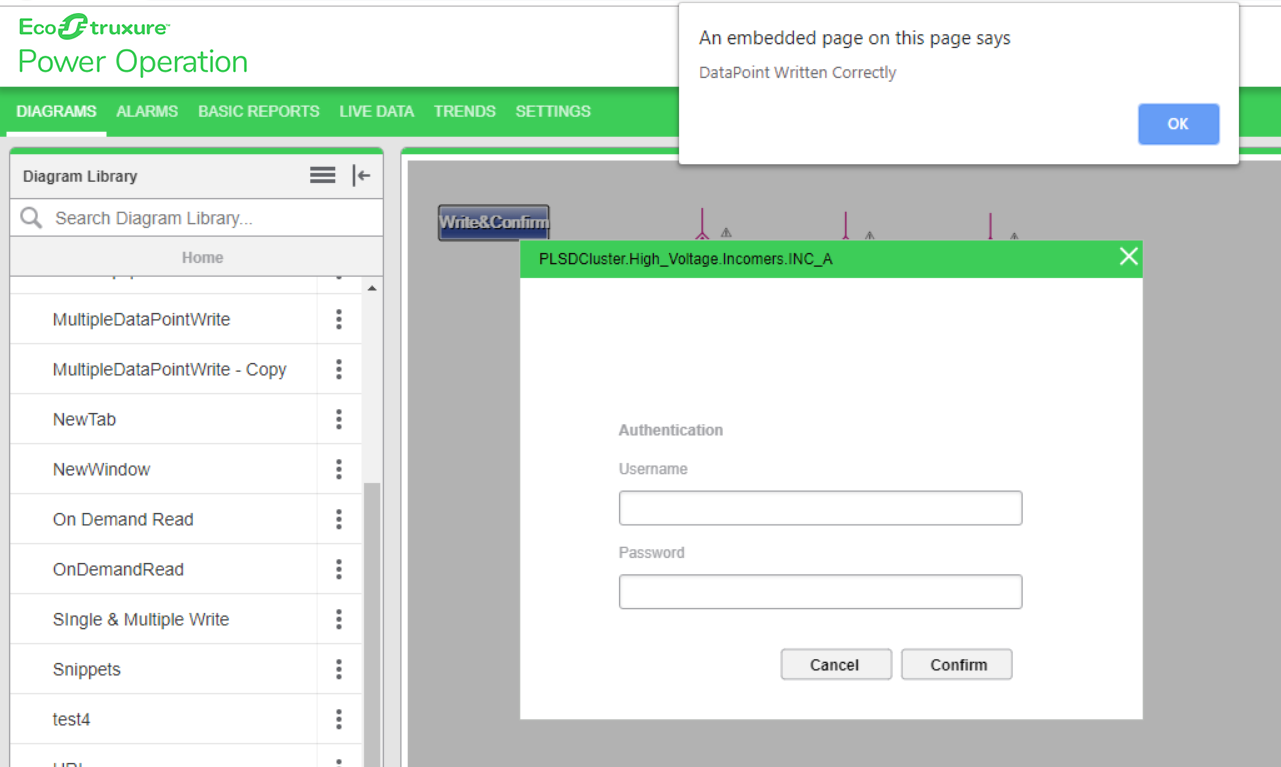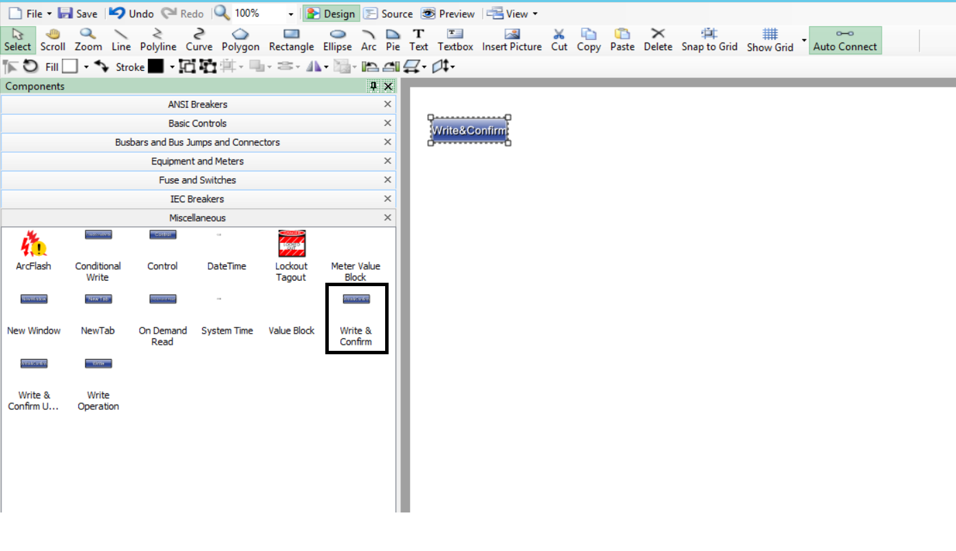 Select on the Write and Confirm component created from the Diagram Library: