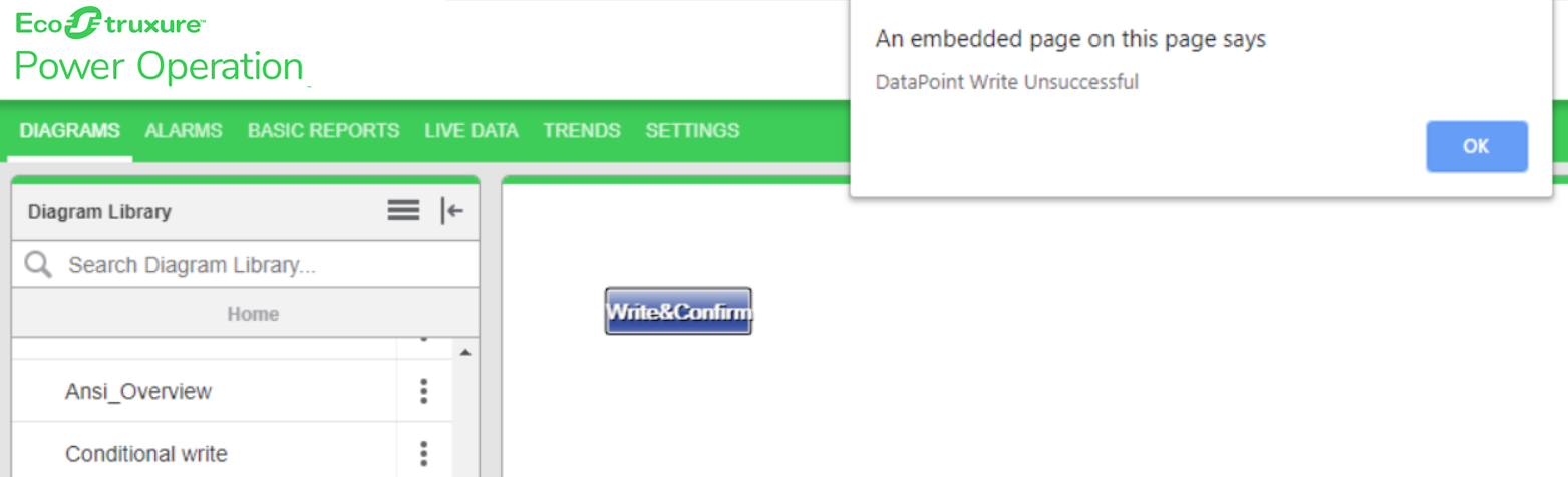 Use the Write and Confirm component to perform breaker operations, On/Off digital outputs, and set CT and PT ratios. Write and Confirm verifies and then confirms that the write operation is either successful or unsuccessful.