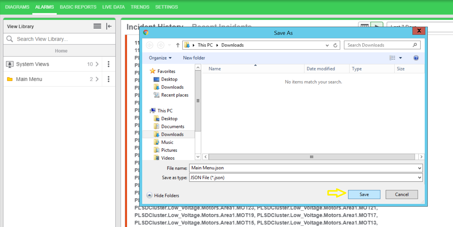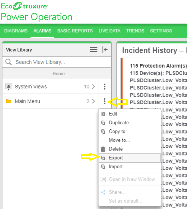 - Check the file in the folder to confirm that the Alarm Menus were exported.