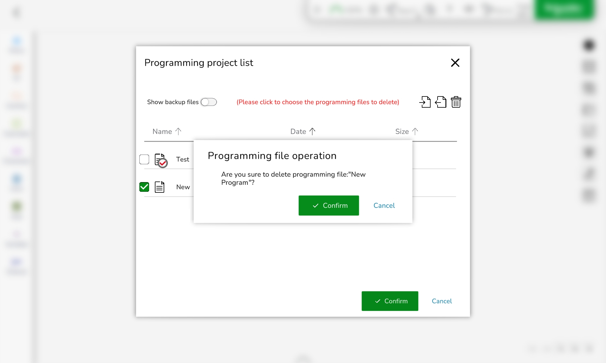 Click Confirm in the prompt and then Confirm in the Manual Operation interface. |