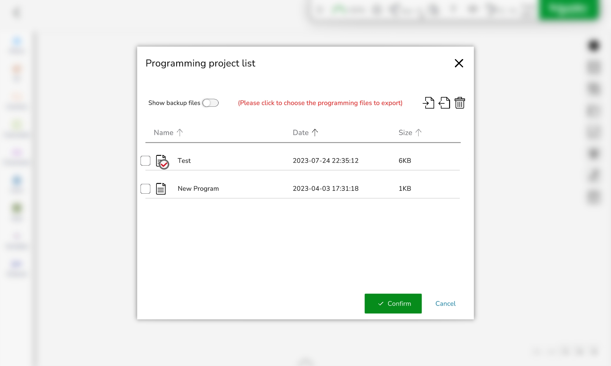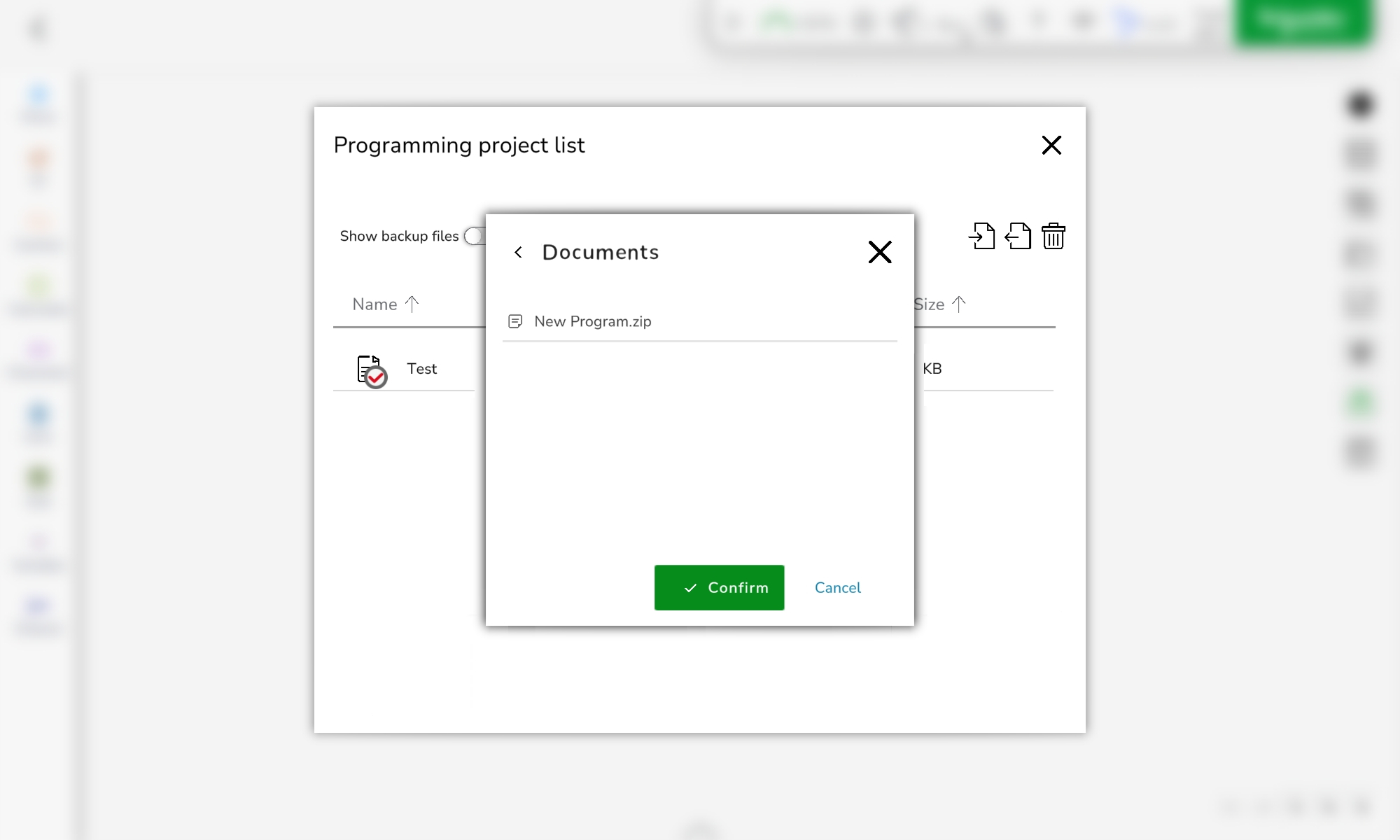Click Confirm. Result: The program is imported to the Lexium Cobot Controller and is added to the Programming project list. |