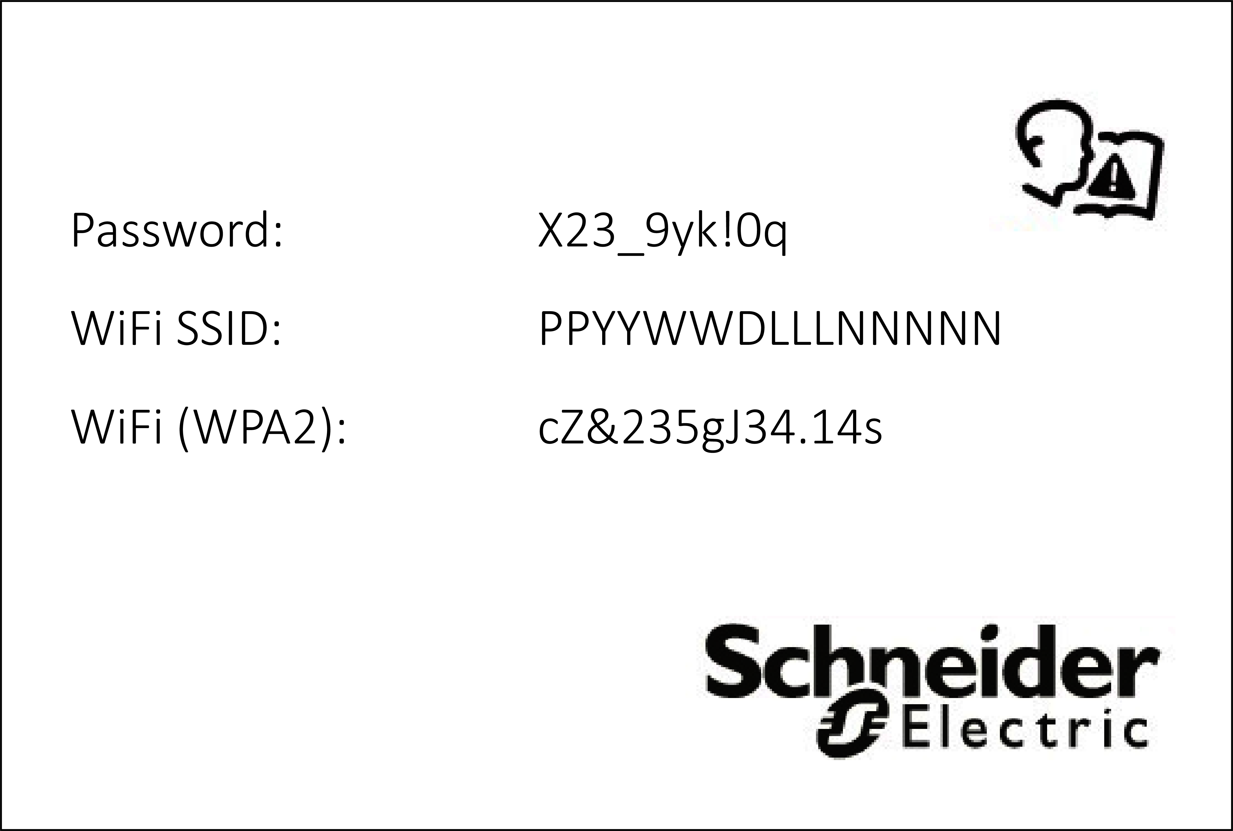 The Lexium Cobot system provides an embedded WiFi service. The webserver is password protected. Each Lexium Cobot Controller has a unique password, which can be found on the WiFi access label attached at the inner side of the front door of the Lexium Cobot Cabinet Controller or on the back of the Lexium Cobot Compact Controller.
