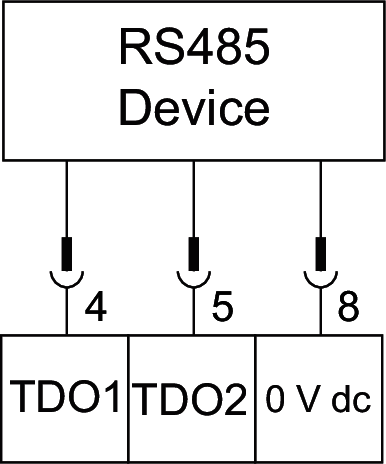 Source or sink (configurable by application), TDO1 and TDO2 can be used together as RS485 channel 1 |