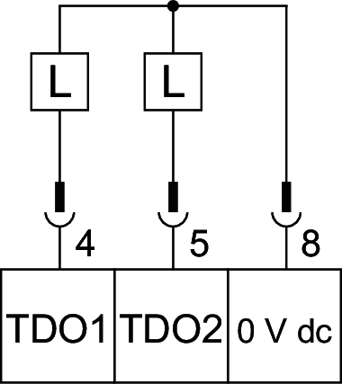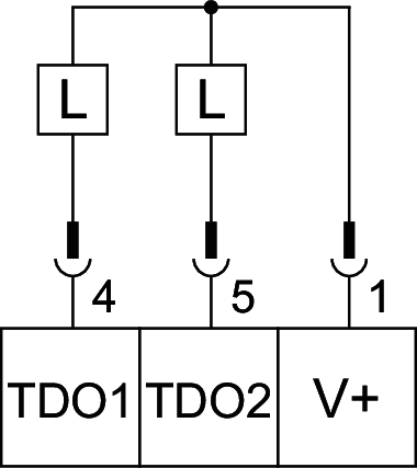 The following figure presents the source wiring of the outputs. Sink or source can be configured on the digital output settings by the application.