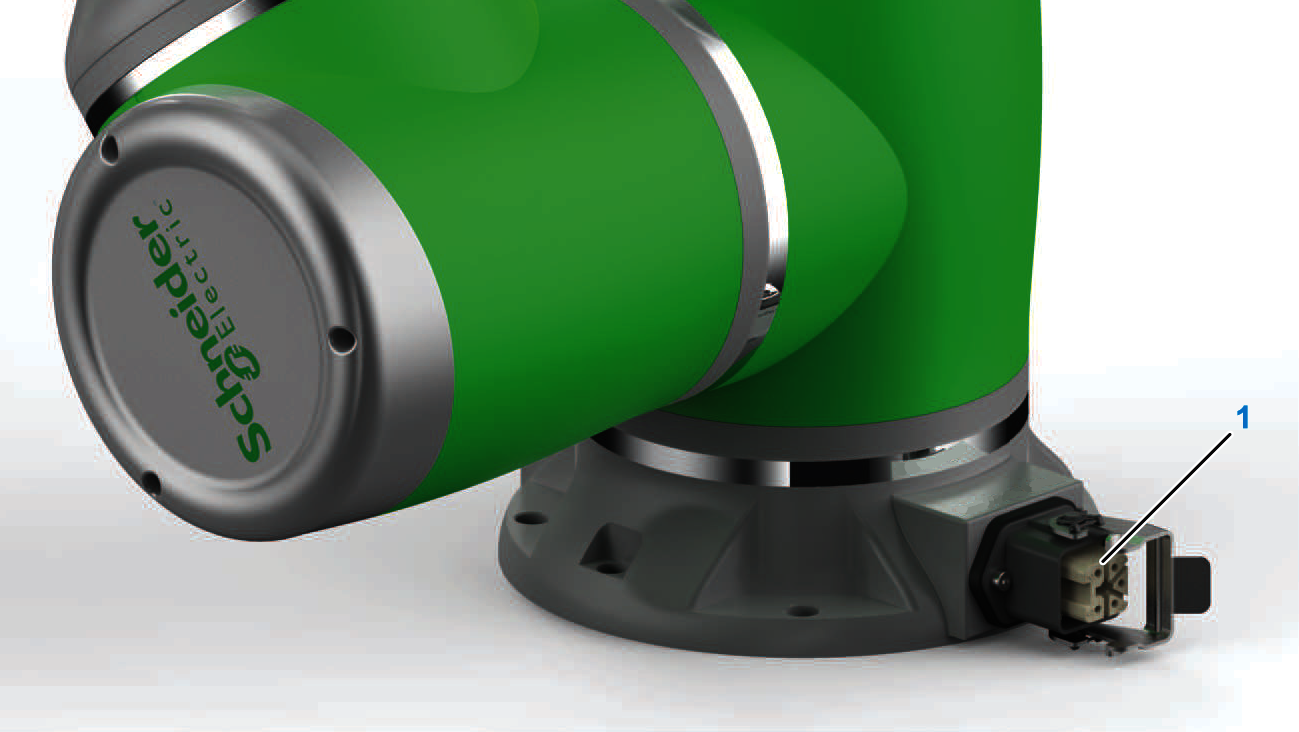 The power supply cable is included in the scope of delivery and one terminal side is pre-mounted on the Lexium Cobot Arm, in a length of 6 m (19.7 ft). On the other terminal side, the power supply cable is equipped with a connector to interface with the Lexium Cobot Controllers.