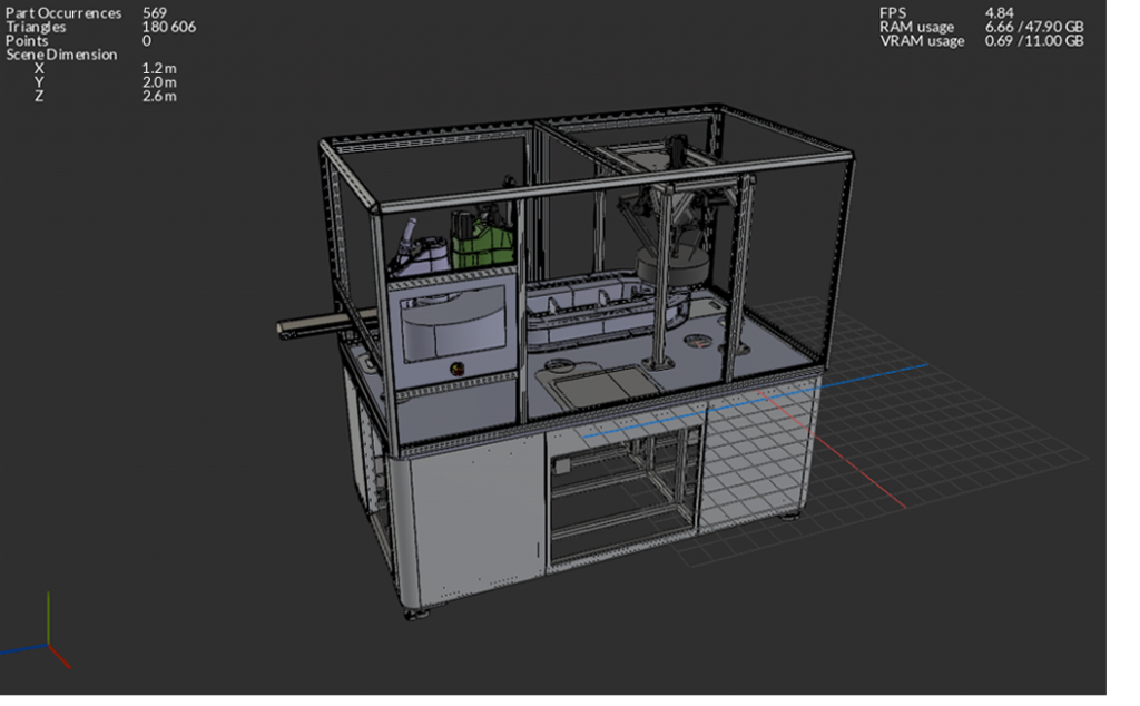 We use a freeware called “Blender” to remove the robots, tracks and emergency stop, and we can also use Blender to simplify parts of the model to save even more triangles.