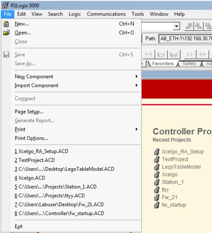 5. Start the RSLogix 5000 software.