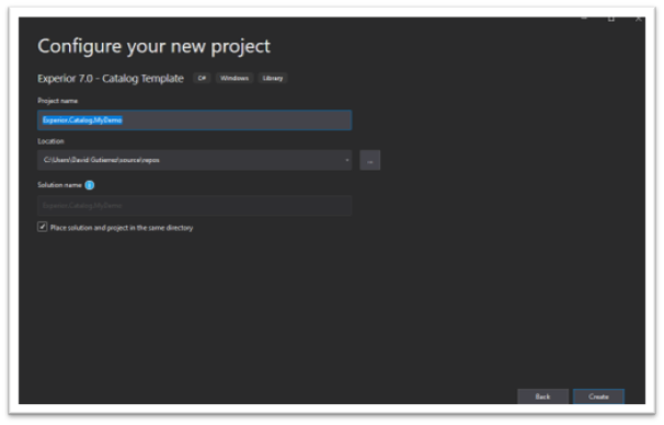 - In this example we name it ‘Experior.Catalog.DeveloperDemo