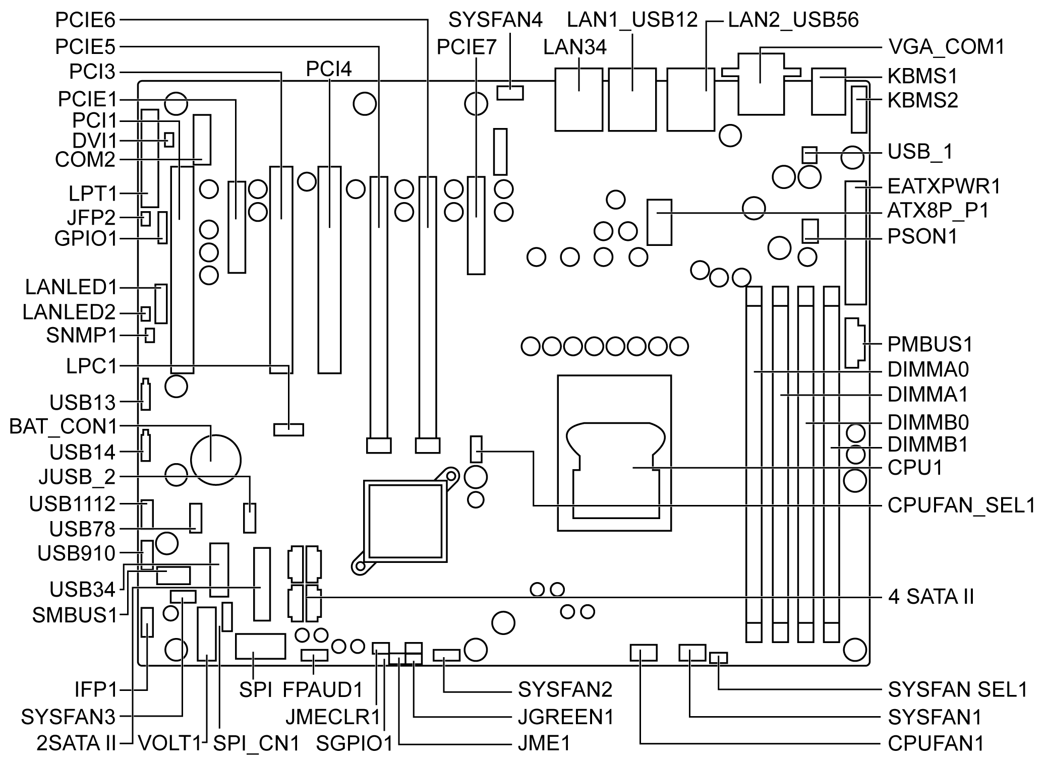 oFunzionalità I/O alte prestazioni: 4 GB LAN tramite bus PCIe, 3 slot PCI 32-bit/ 33 MHz PCI, 4 porte USB 3.0,10 USB 2.0. (2 connettori USB 2.0 tipo A), 2 connettori SATA III e 4 connettori SATA II.