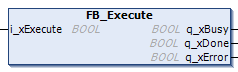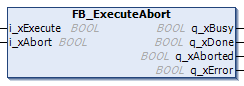 This function block type extends the FB_Execute with the option to abort the ongoing process. Refer to FB_ExecuteAbort. |