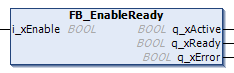 This function block type combines the FB_EnableReady and the FB_Execute. It is used to bind a resource and afterwards a task can be executed using the bound resource. Refer to FB_EnableExecute. |