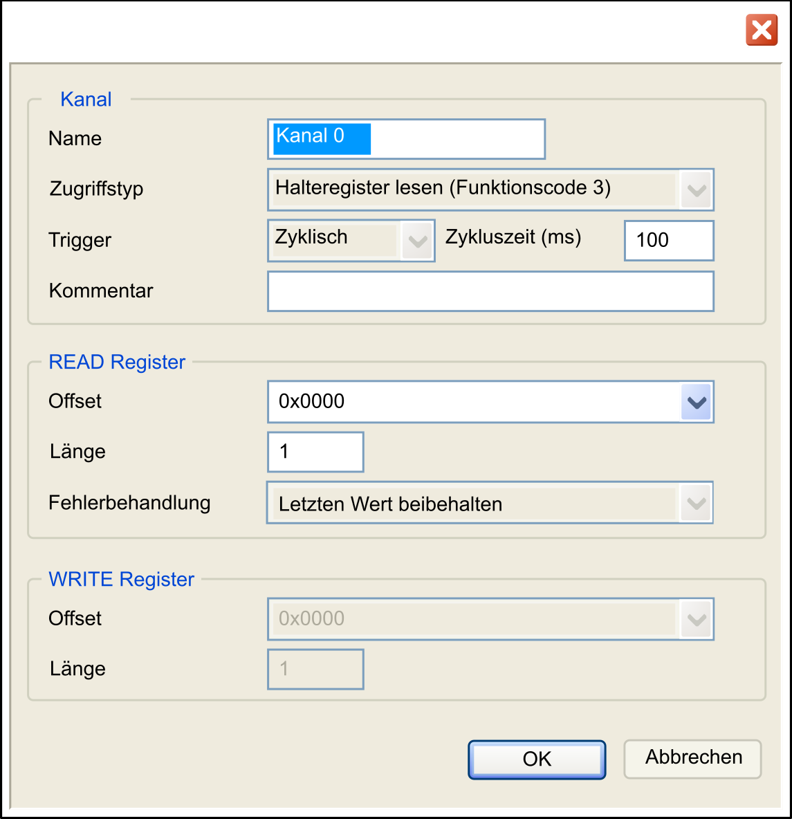 Read Holding Registers (Standardeinstellung für die Kanalkonfiguration) |
