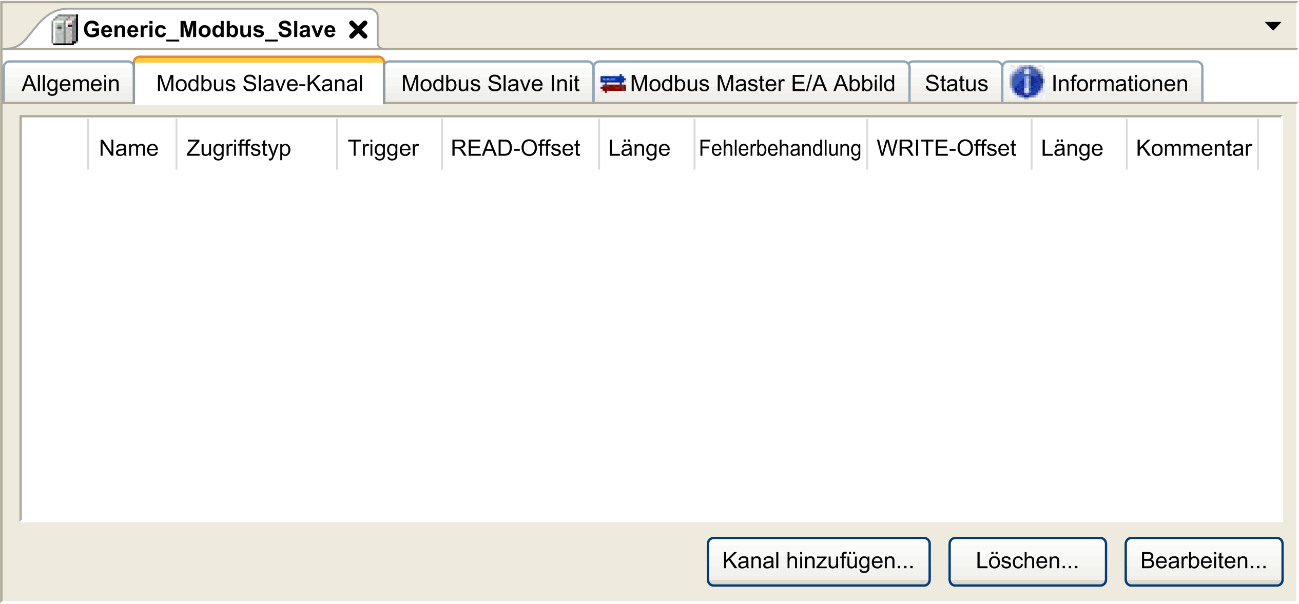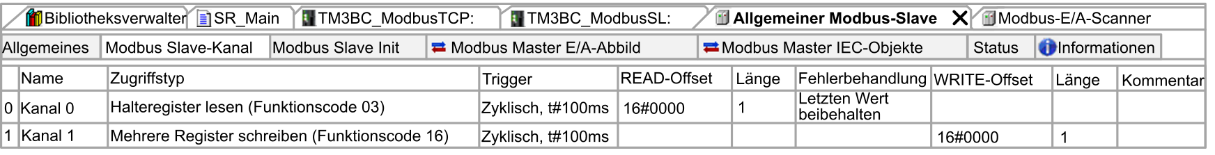Klicken Sie auf die Registerkarte Modbus Slave-Kanal: