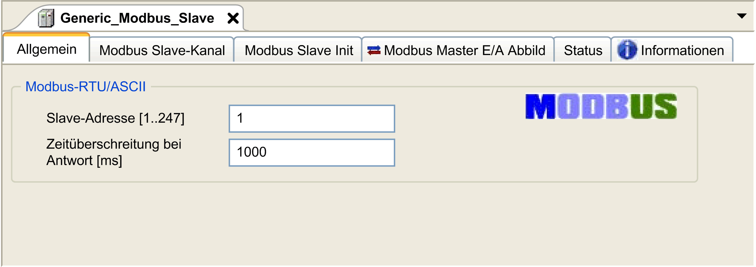 Klicken Sie auf die Registerkarte Modbus Slave Init: