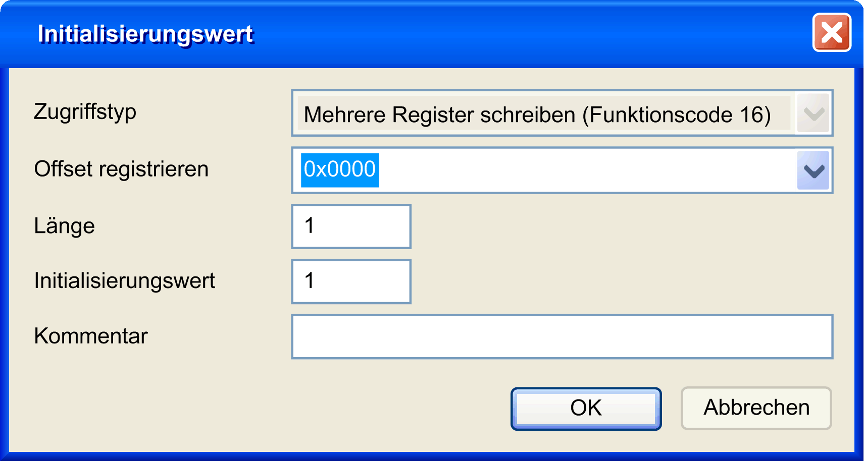 Das Fenster Initialisierungswert enthält die folgenden Parameter: