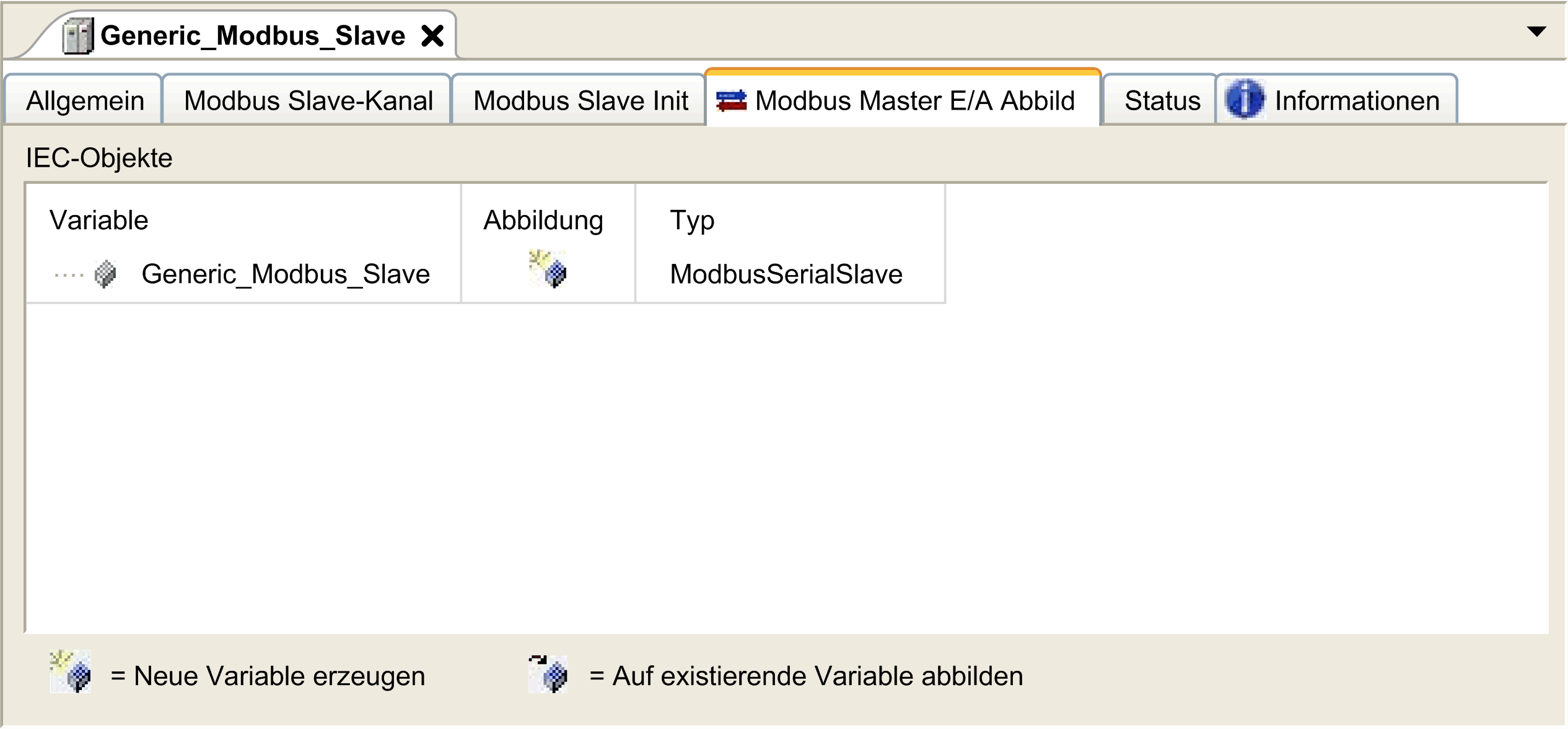 %IWx und %QWx der Registerkarte Modbus serieller Master E/A-Abbild automatisch die Variable für den Datenaustausch erstellt.