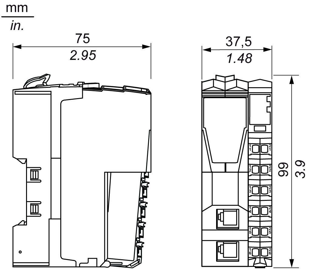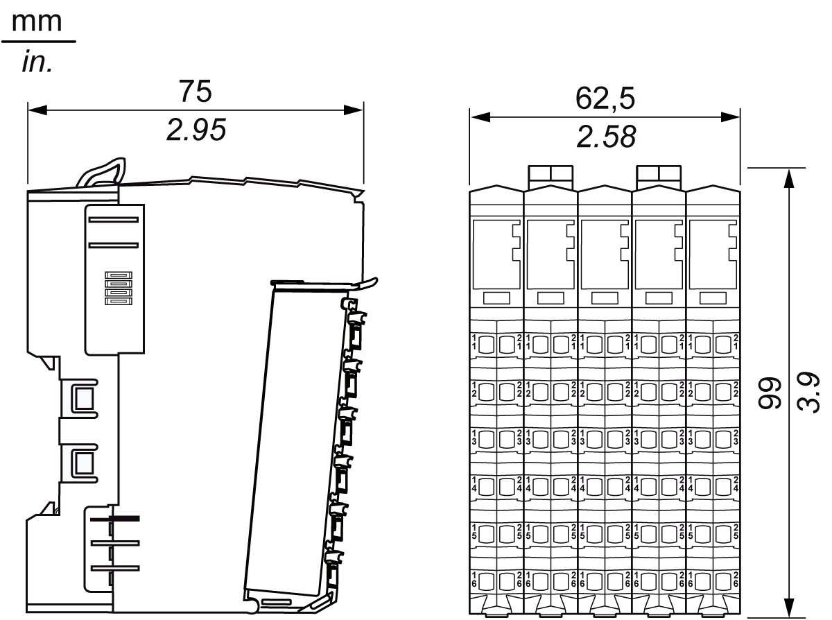 Die Komponenten des TM5-Systems werden "direkt nebeneinander" montiert. Es besteht kein Abstand zwischen den einzelnen TM5-Komponenten.