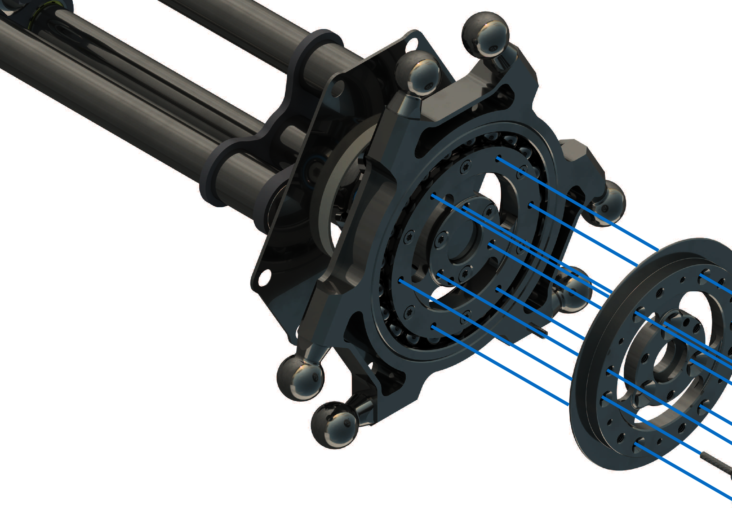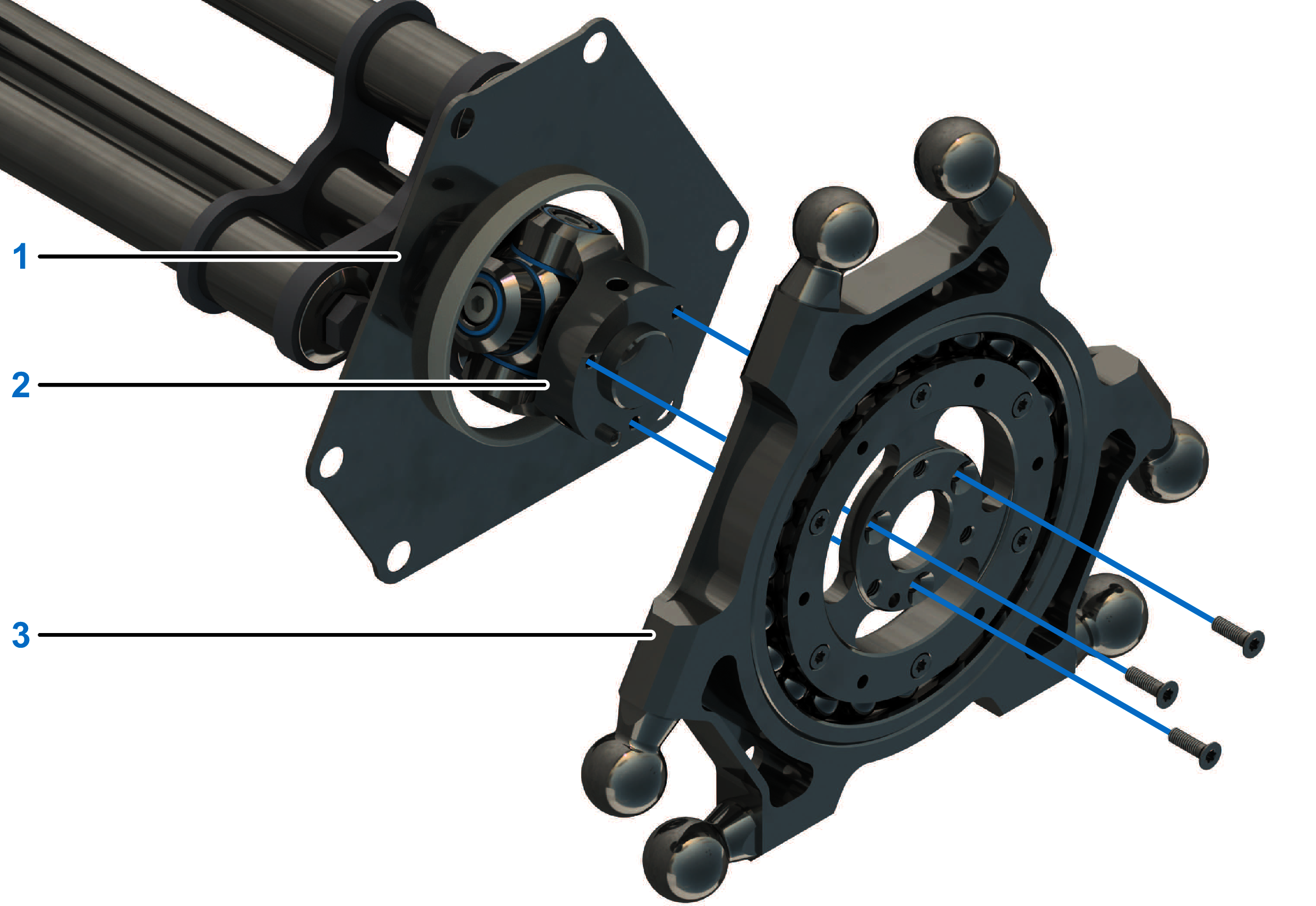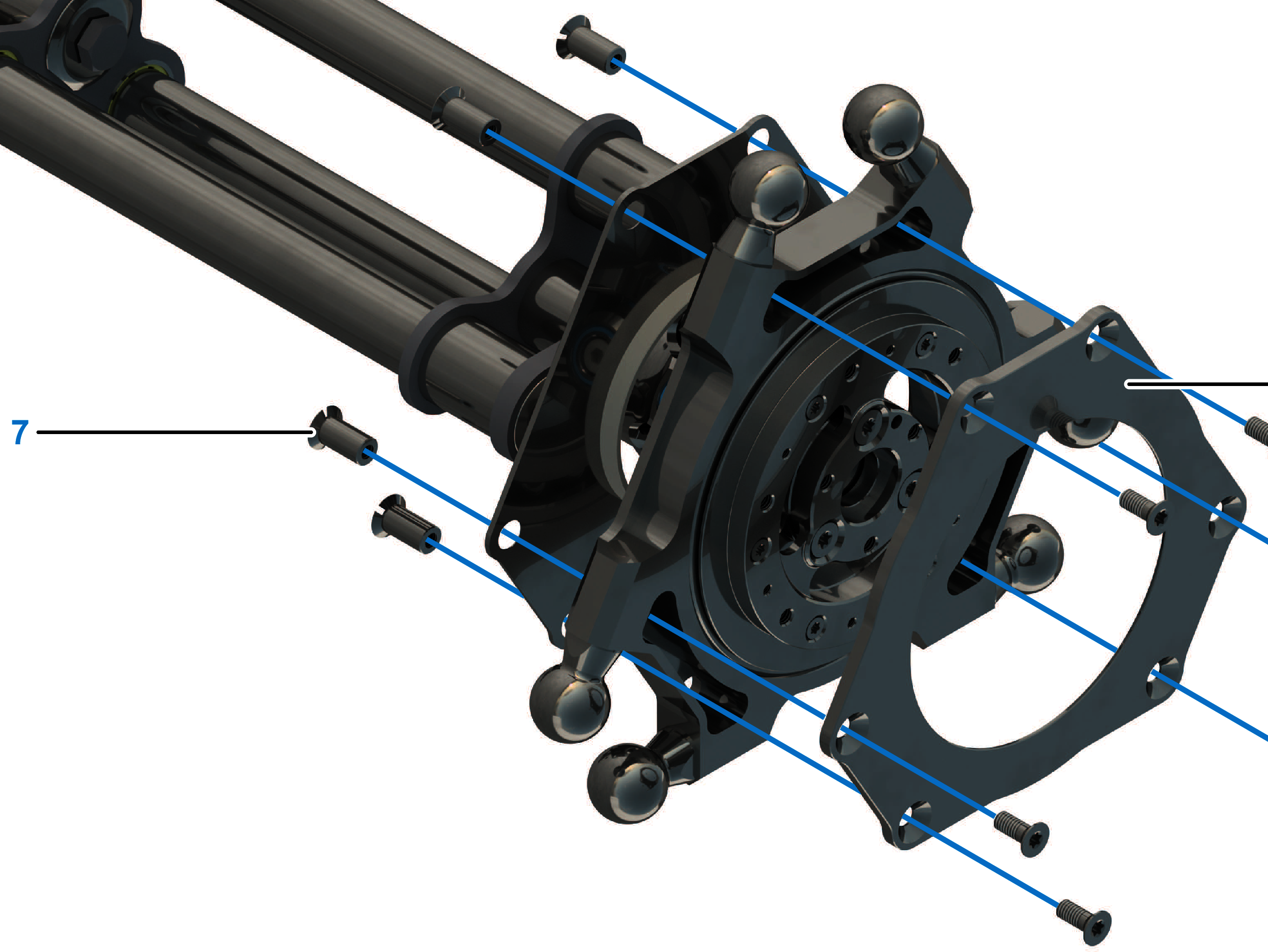 Fasten the flange offset ring (4) to the parallel plate with the three counter sunk screws M4x10 (6) and six counter sunk screws M2.5x16 (5). Use the medium strength threadlocking adhesive Loctite 243 for this purpose. Tightening torque: