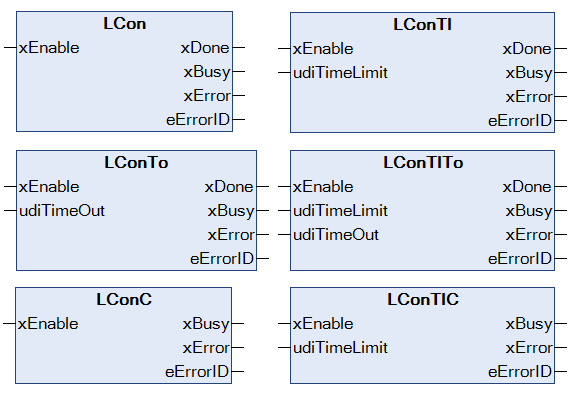See the detailed descriptions of the reference implementation for the different level controlled function blocks: LCon | LConTl | LConTo | LConTlTo | LConC | LConTlC