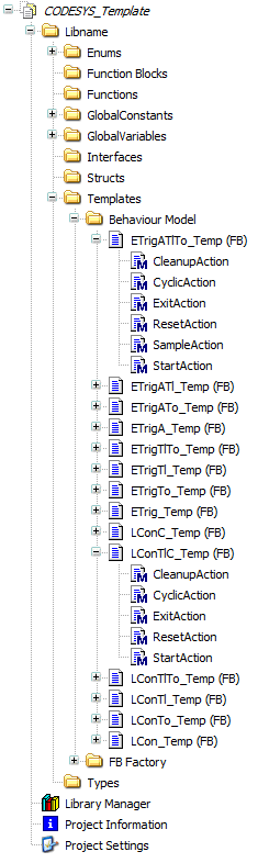 For CODESYS V3 there is the library CommonBehaviourModel.library, it implements the behavior model described earlier at a central location. Also there are library project templates, extending the behaviour model for the particular usage. The Library and the templates are available with the CODESYS V3 setup.