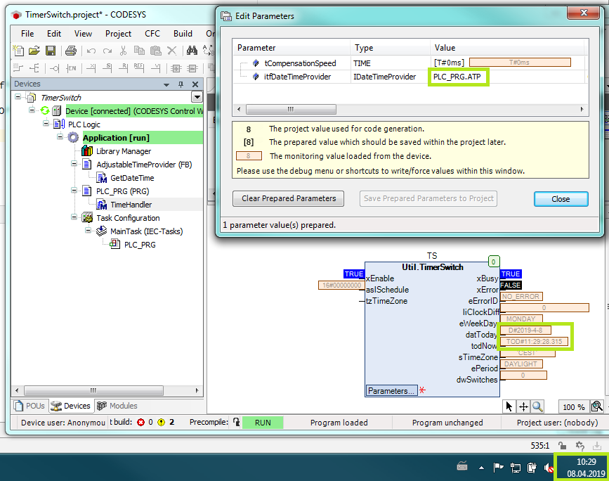 We add another input to this function block. This offset would then be used to calculate an application-specific clock time from the clock time that we previously read from the runtime system.