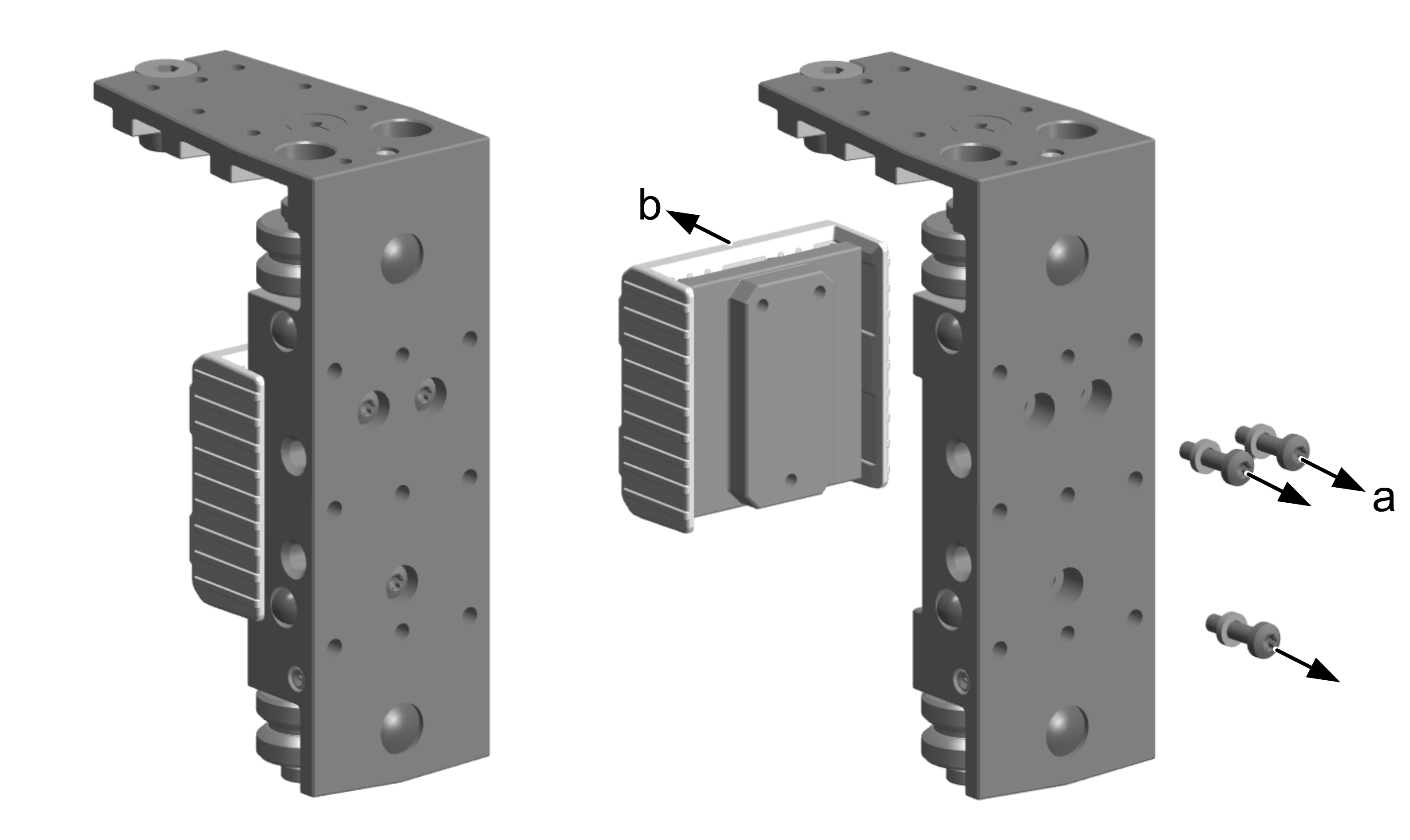 Insert a new supporting plate and fix the supporting plate with the associated screws. Make sure to add the associated washers as well. |