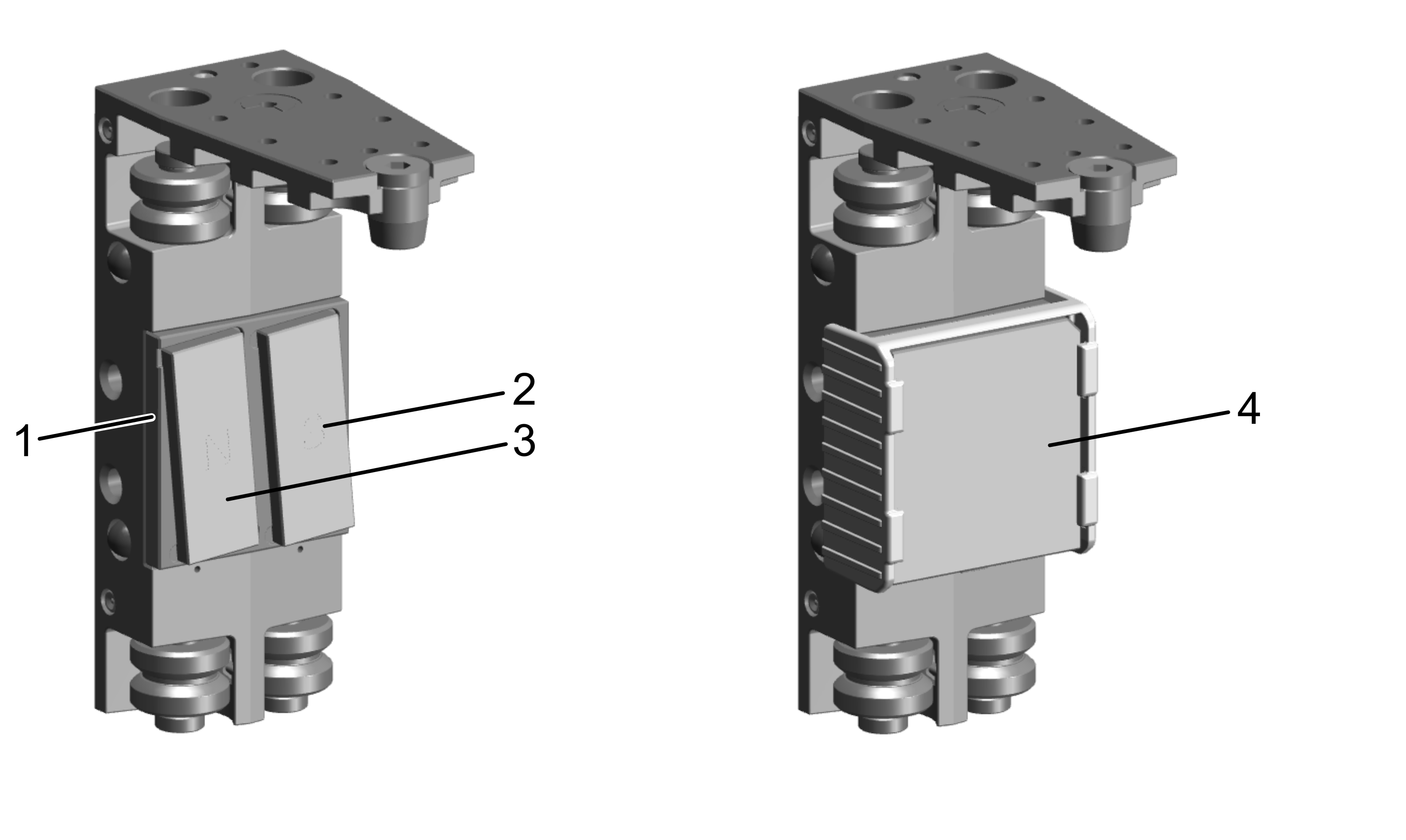 NOTE: A Lexium™ MC12 carrier has two drive magnets (2+3) which are firmly mounted on a supporting plate (1).