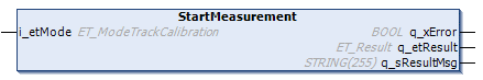 By calling the method StartMeasurement, you start the measuring process that runs without further user action. You can verify the status of the process through the property eState (see FB_TrackCalibration).