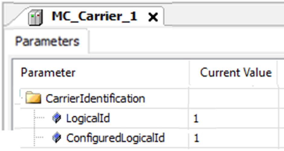 In the second step, the logical carrier objects (LogicalId) are linked to the IDs of the carriers on the track (ConfiguredLogicalId).