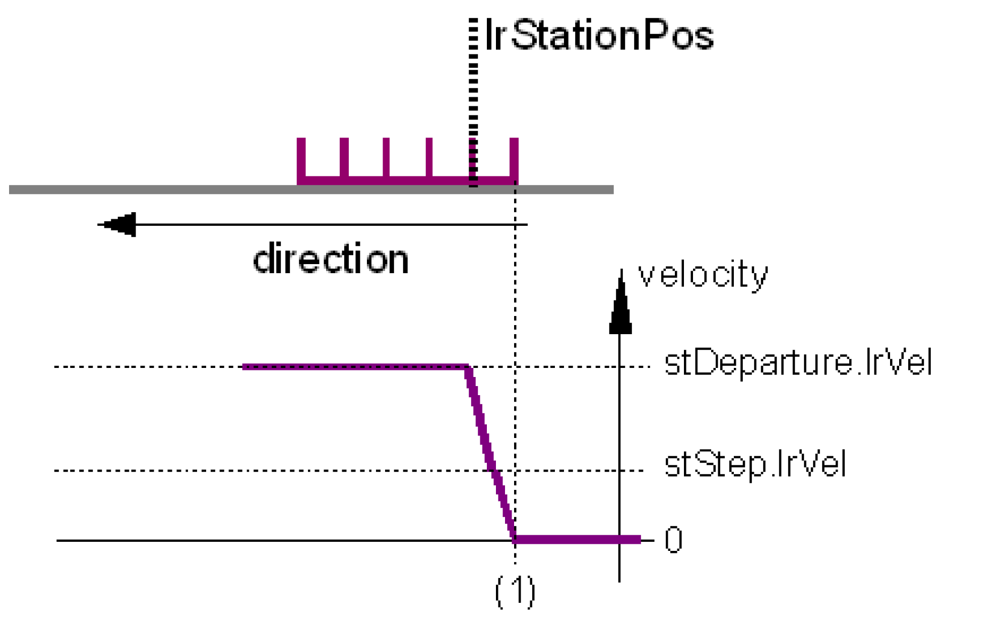 If lrAdditionalStep: = 0, then the train remains synchronous to the master until the end of the last synchronous phase and then it starts with the stDepartureMove Parameters. The minimum lrAdditionalStep value thus corresponds to stStation.alrSteps[0]-stStation.stSynchron.lrSynchronEnd.
