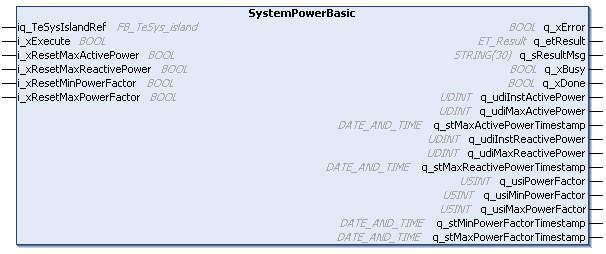 The function block SystemPowerBasic returns power information and resets the power registers of the system avatar.