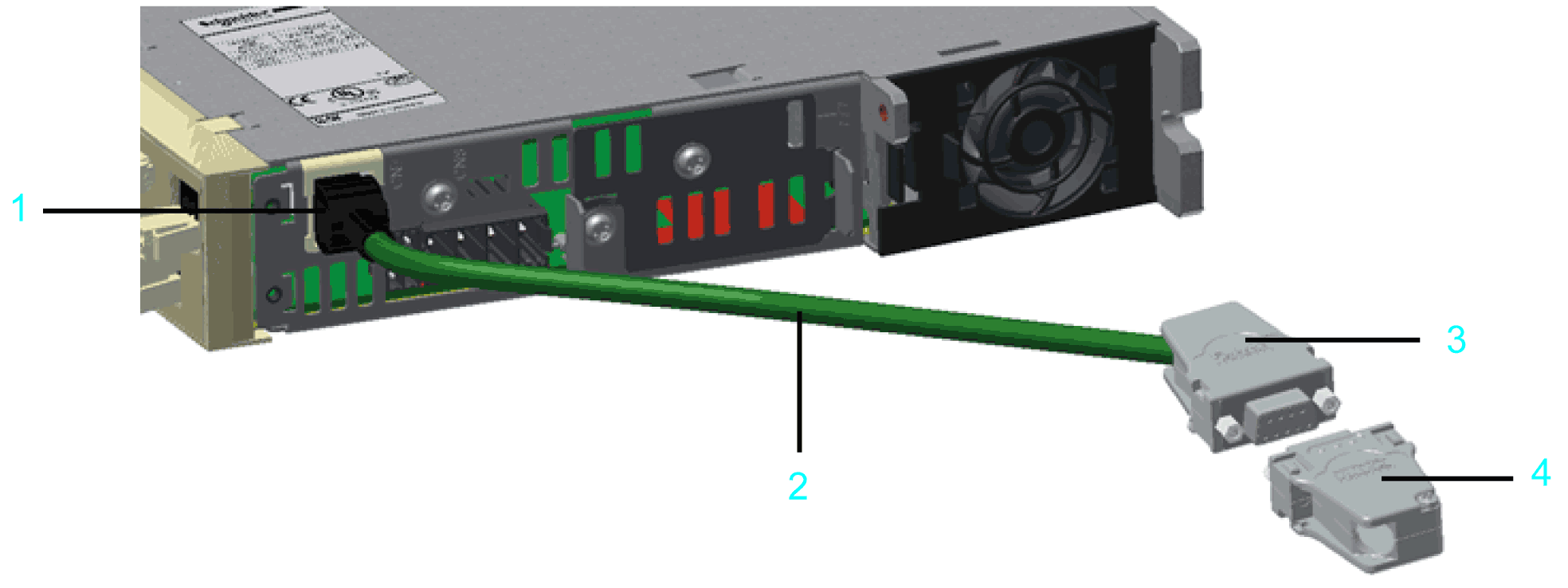 A DC/DC converter is assembled in the D-Sub 9-pin female connector (3). It converts the encoder power supply that is coming from the drive from 10 V to 5 V, making it possible to connect 5 V encoders which are not directly supported by the Lexium 62 servo drive. The 5 V and the 10 V encoder supply voltage is available on the D-Sub 9-pin female connector (3). The other signals, such as encoder- and RS485 signals are transferred directly from the drive to the encoder.