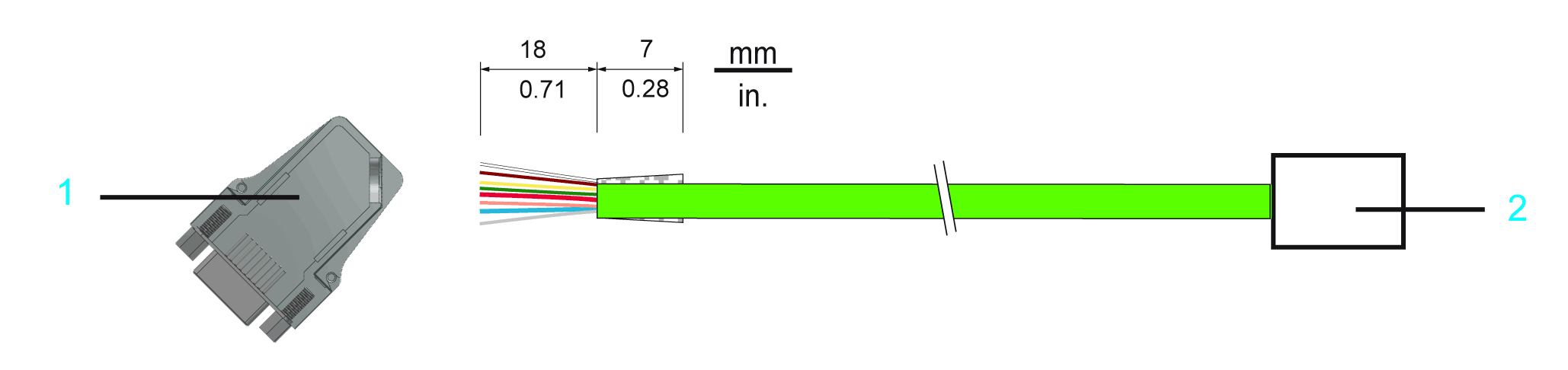 2 D-Sub 9-pin male connector at the encoder cable