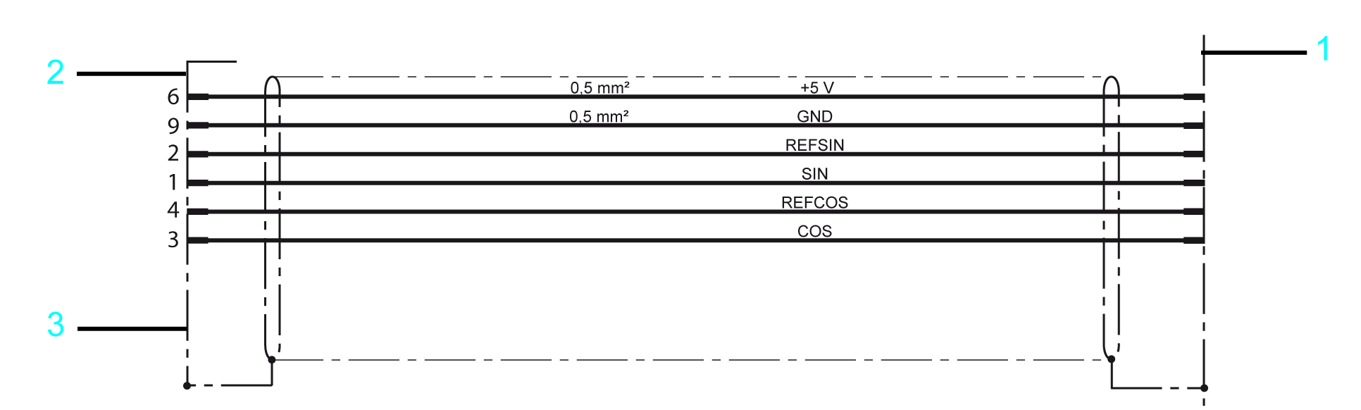 Connection of D-Sub 9-pin male connectors at the encoder cable (user furnished):