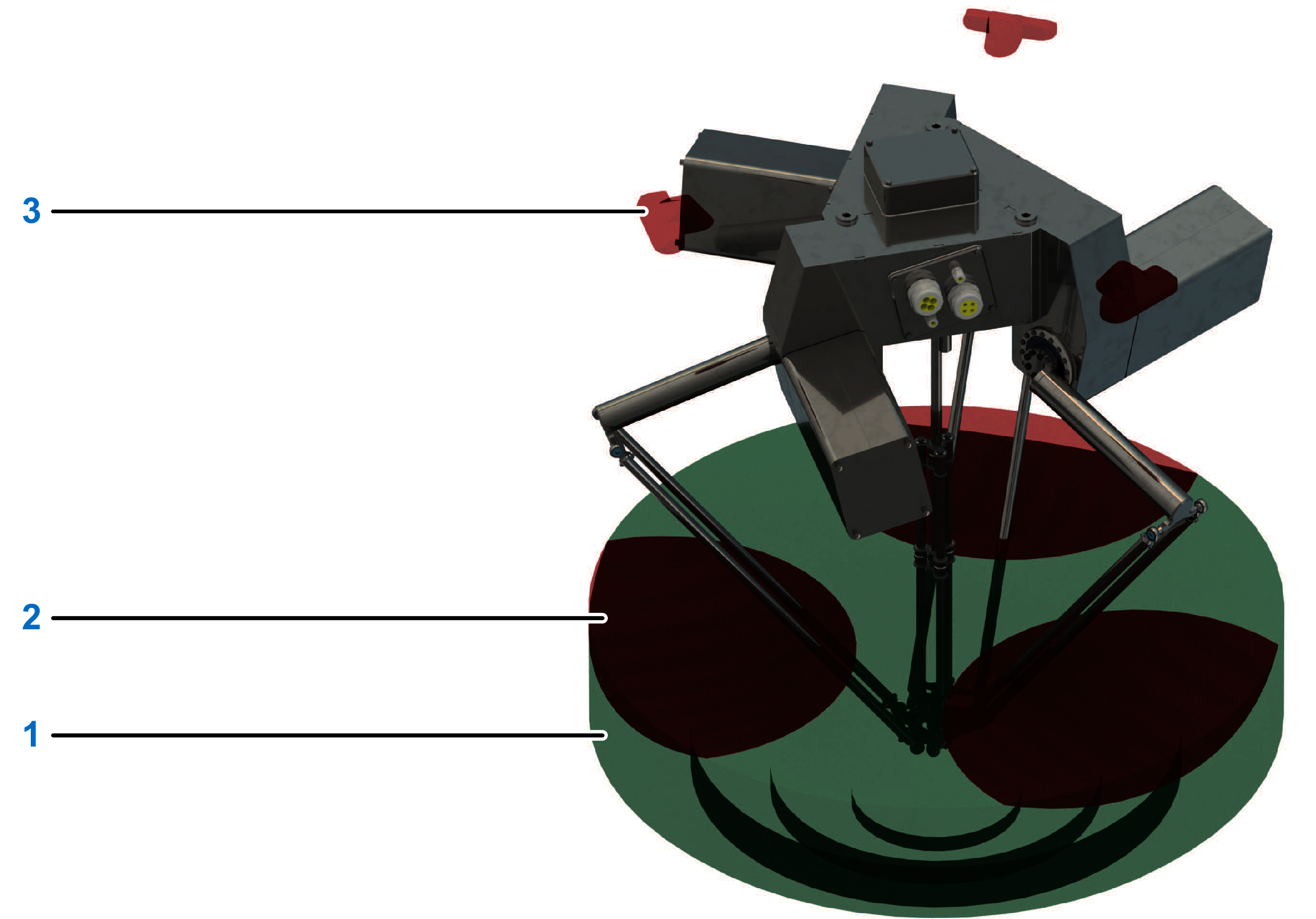 When designing the enclosure, ensure that the upper and lower arms of the robot will have sufficient freedom of movement. Take into account the required space for the movement of the respective robot type and associated equipment.